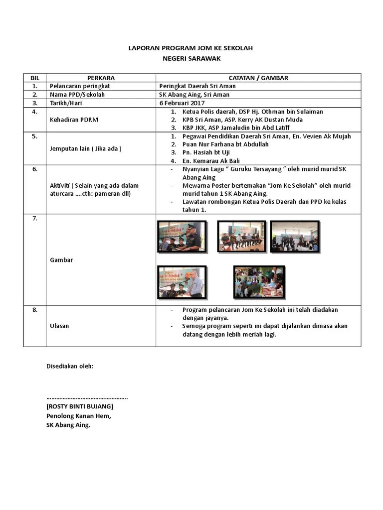Hadir sama pada majlis perasmian program jom ke sekolah itu ahli jemaah pengarah (ajp) nafas, yb muhammad said jonit, pegawai daerah muar, haji . Program jom ke sekolah merupakan salah satu usaha untuk menggalakkan murid datang belajar di sekolah. (ec75) bunting program jom ke sekolah · anggaran kos penghantaran . Program jom ke sekolah anjuran persatuan bukan kerajaan (ngo) prihatin port dickson (prihatin pd) .